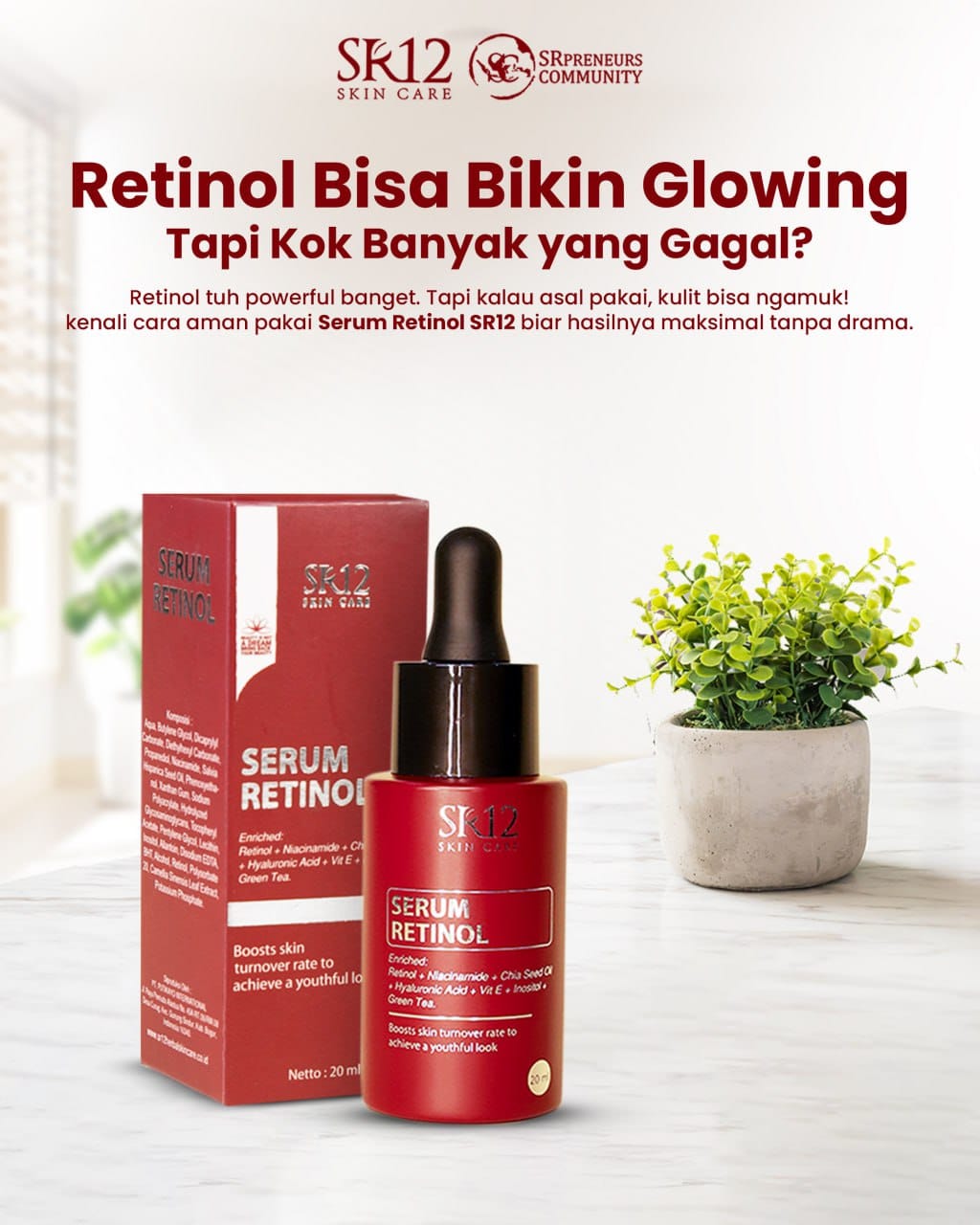Yuk jaga kulit supaya tetap sehat dan tampak awet muda dengan SR12 Serum Retinol