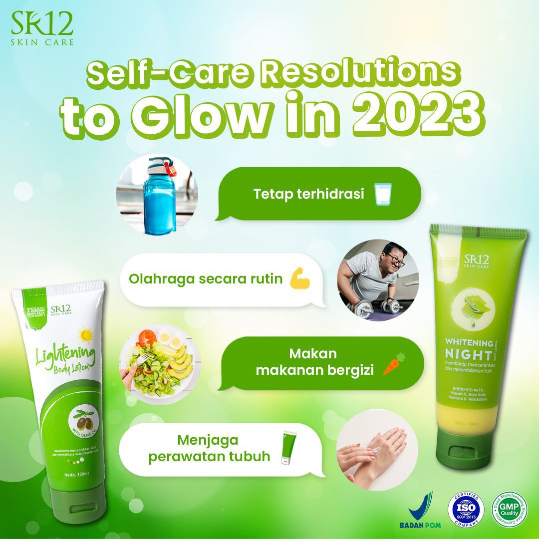Siapa yang nggak mau glowing from head to toe di tahun baru? Let’s be a better, more glowing version of ourselves by making a habit of self-care, salah satunya dengan membiasakan merawat kulit setiap hari, nggak cuma untuk wajah tapi juga tubuh. Yuk awali tahun baru dengan membangun rutinitas body care, gunakan Lightening Body Lotion & Whitening Night Body Lotion and let your glow shines all year