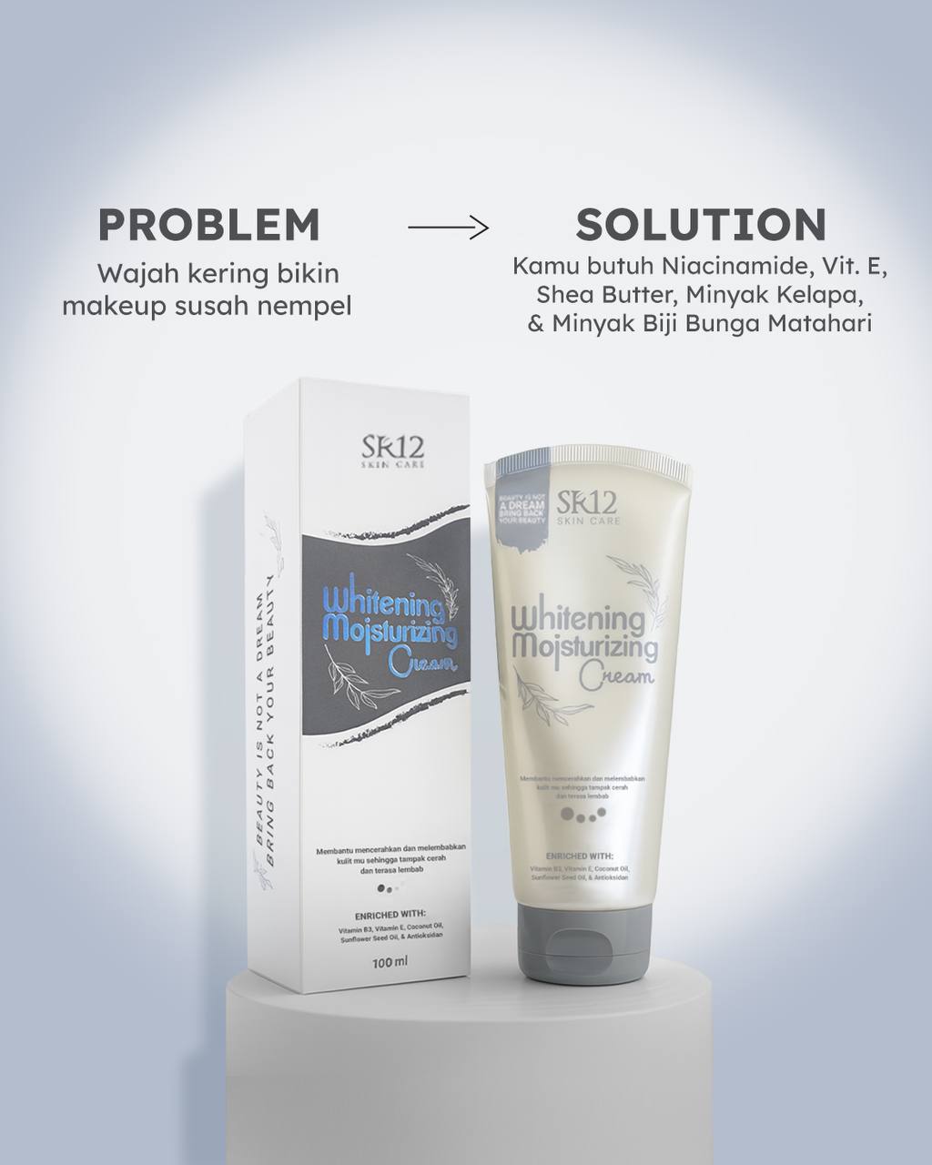 Udah rajin skincare-an tapi kulit masih kusam? Makeup susah nempel karena kulit kering? Itu tanda kulit kamu butuh: Whitening Moisturizing Cream SR12